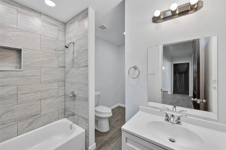Fully renovated from top to bottom, this 4-bedroom, 2-bathroom home brings space, flow, and modern updates together on a generous 11,316 sq ft lot. Built on a solid slab foundation with durable Hardie board siding, the home features a bright open layout anchored by a central living room and connected kitchen/dining areas. The entire interior has been upgraded — new roof, plumbing, electrical, kitchen, bathrooms, and central air. The layout offers privacy with separated bedroom wings and multiple full baths for flexibility. A fully fenced backyard adds room to enjoy the outdoors. Located in a deed-restricted neighborhood with public water and sewer access.
