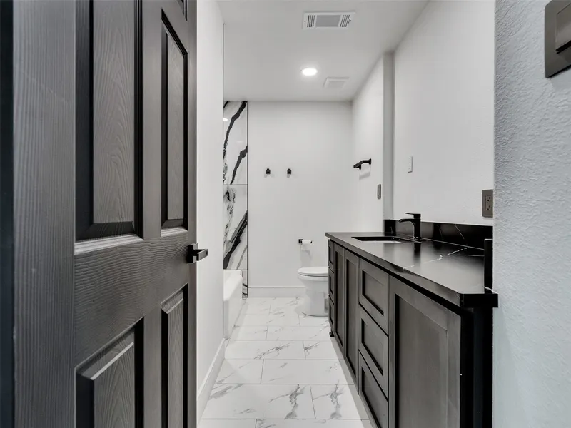 Step inside to discover bold black-stained hardwood floors, modern tile, and a bold kitchen featuring sleek black quartz countertops, contemporary lighting, and an open-concept layout—perfect for entertaining and everyday living.