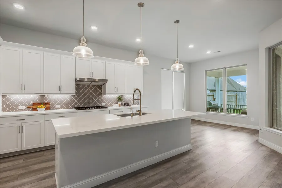 Work in style behind elegant glass French doors in the secluded study. The heart of the home is a sprawling quartz island kitchen that flows into a family room anchored by a cozy gas log fireplace. Upstairs, the entertainment wing boasts a dedicated media room & a massive game room. Step outside to an extended covered patio or enjoy Amira’s world-class amenities, including a 7,000 sq. ft. clubhouse, pools, park & historic dog park. Skip the wait for new construction and ...
