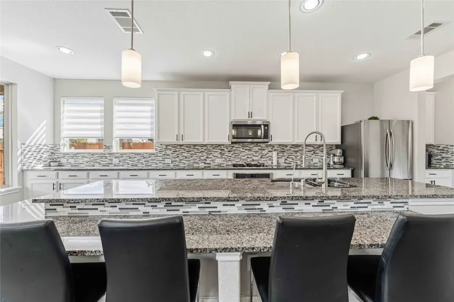 Welcome to this beautifully maintained 4-bedroom, 3.5-bath home where comfort and functionality effortlessly come together. From the moment you step inside, soaring two-story ceilings and abundant natural light create a warm, open feel. Just off the entry, a private home office and elegant formal dining room offer ideal spaces for work and gatherings.