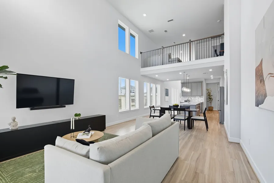 This stunning modern two-story plan offers a long foyer at entry that leads into the kitchen with an open-concept dining area and large family room that allows for spacious entertaining. The private owner's suite is tucked away at the back of the first floor with shower, tub and oversized walk-in closet. Additional bedroom at front of home. Upstairs you will find two additional bedrooms with a full bath and game room. Interior design upgrades feature LVP flooring at entry, kitchen, great room, ceiling fans at gathering room and owner’s suite. Home can be sold furnished minus wall decor.