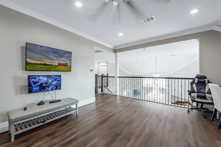 Lovely home in a well-established neighborhood on a quiet cul-de-sac street zoned to highly rated Humble ISD schools. Pride of ownership shines from the moment you enter! The foyer opens to a formal dining area with wood floors and flows into a spacious family room featuring a gas log fireplace. Elegant details include vaulted ceilings, tall baseboards, and a graceful staircase. The updated kitchen is a showpiece with high-end finishes, quartz counters, stainless appliances, and a stunning backsplash. The first-floor primary suite offers a spa-like bath with dual vanities, a large shower, custom closet, and views of the backyard oasis with heated pool and spa. Upstairs you’ll find a large game room, three generous bedrooms, and an updated bath.