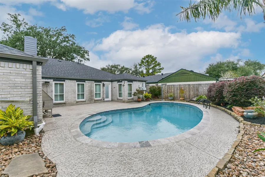 Immaculate home in Clear Lake that stands above the rest for what you get! This lovely 4 Bedroom 2 Bath home has a yard that should win yard of the month every month as well as a beautiful backyard retreat that has pool and tanning deck. Inside the home there are updates galore to include the kitchen upgraded, both bathrooms remodeled, newer HVAC system, luxury vinyl plank flooring, plantation shutters, newer windows, even added insulation in the attic! The exterior of the home has a new roof, leaf guard gutters, a sprinkler system for the beautiful yard, the pool has been redone, driveway has been replaced, and a new garage door. If you are looking for a home that you don't have to worry about upgrading, this is it! As added bonuses this home is in highly acclaimed Clear Creek ISD, close to Baybrook Mall and close to NASA. Plus it has easy access to I45 making trips to Galveston a breez...