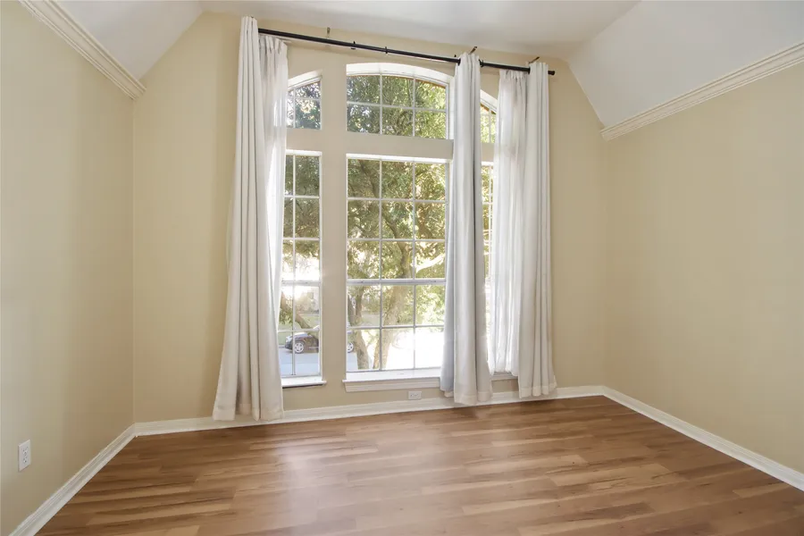 Refined Champion Forest residence thoughtfully updated and impeccably presented, featuring wide-plank wood-style flooring, refreshed kitchen finishes, soaring ceilings, and abundant natural light throughout. Generous storage is seamlessly integrated, enhancing both form and function. The main level offers elegant formal and casual dining spaces, a private library or study that has been elevated to a fourth bedroom with an en-suite bath, and an expansive first-floor primary suite. This serene retreat is highlighted by elevated ceilings, a spa-inspired bath, and a spacious walk-in closet. Upstairs, you will discover a sophisticated media lounge and flexible living space—currently styled as a home theater—that is complemented by two well-appointed secondary bedrooms. Outdoors, the home enjoys fenced privacy, a tranquil greenbelt backdrop, and direct access to a walking trail. Ideally located minutes from Vintage Park dining, shopping, golf courses, and neighborhood parks.