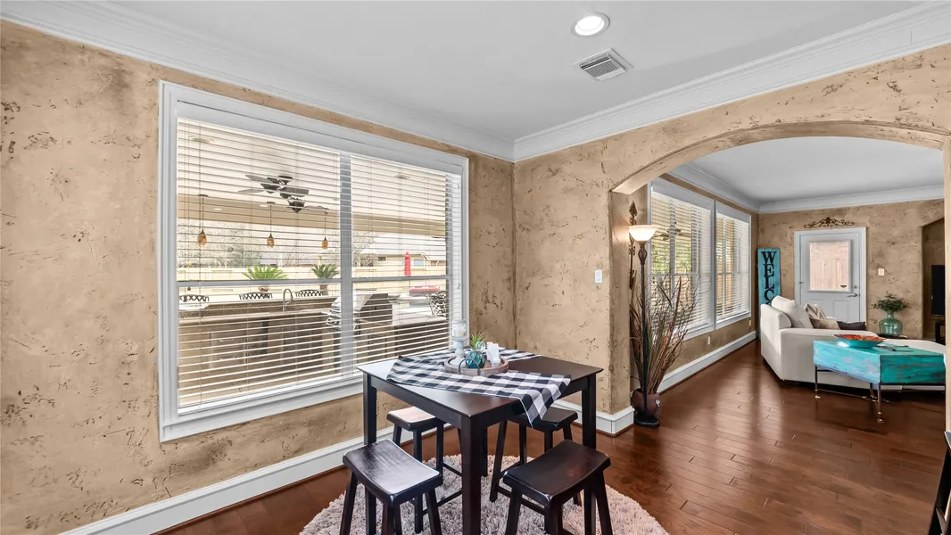Perfectly positioned on a double cul-de-sac and set on one of the LARGEST lots in the neighborhood, this beautiful 2-story brick home offers the privacy, space and resort style outdoor living today's buyer craves! The 15,830 sq. ft. property backs to a greenbelt and showcases a backyard retreat with a HUGE covered patio, outdoor kitchen and sparkling saltwater pool/spa. Pool heater & lights recently replaced, plus brand-new fencing (Dec 2025). LOTS of extra yard for a soccer match, or for the pets to play! Inside, enjoy hardwood floors throughout the downstairs and staircase. Further updates include two A/C units (2024 & 2025), water heater (2021), dishwasher (2024) all providing the buyer total peace of mind! Meticulously cared for and well maintained, this property is a show piece! Spacious and perfect for entertaining— you will discover comfort, privacy, and exceptional living both inside and out!