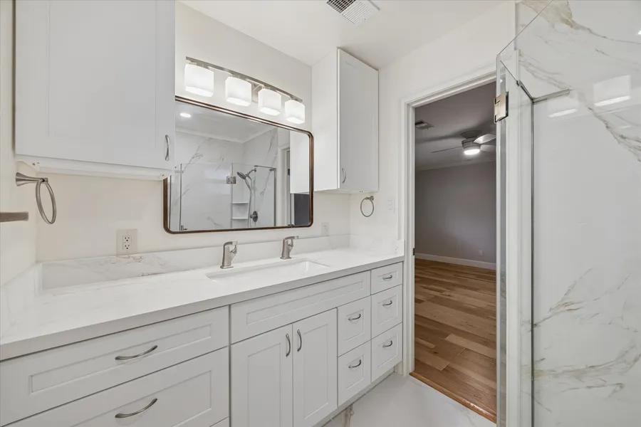10422 Raritan Dr. is an inviting 2,074sqft home on an 8,400sqft lot, on a U-shaped street inside the welcoming neighborhood of Shadow Oaks, equipped with 3 bdrms & 2 full baths, study/flex space, covered back patio, laundry/mudroom & Pool. Originally built in 1959, the home has undergone a tremendous amount of thoughtful modern updates and careful maintenance to retain its traditional charm. At entry, an open layout providing perfect dimensions & harmonious living, anchored by 6.5” Hickory engineered wood floors throughout the home. A bespoke kitchen with Oak wood cabinetry, Quartz countertops and SS appliances. Additional features include an automatic gate, plantation shutters, updated Plumbing, all new windows, remodeled kitchen & bathrooms, resurfaced pool decking (2026), Roof (2018), HVAC & Furnace (2025). one block from Nob Hill Park. Nearby Memorial City Mall. This neighborhood is ...