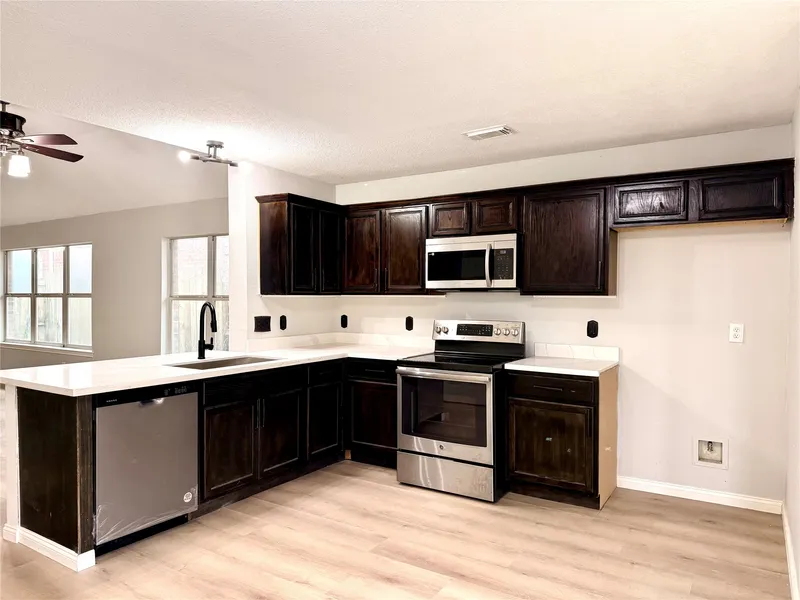 The kitchen showcases elegant granite countertops, blending functionality with timeless style, while the open layout creates an inviting flow ideal for everyday living and entertaining. Large windows fill the home with natural light, enhancing the bright and airy feel of each room.