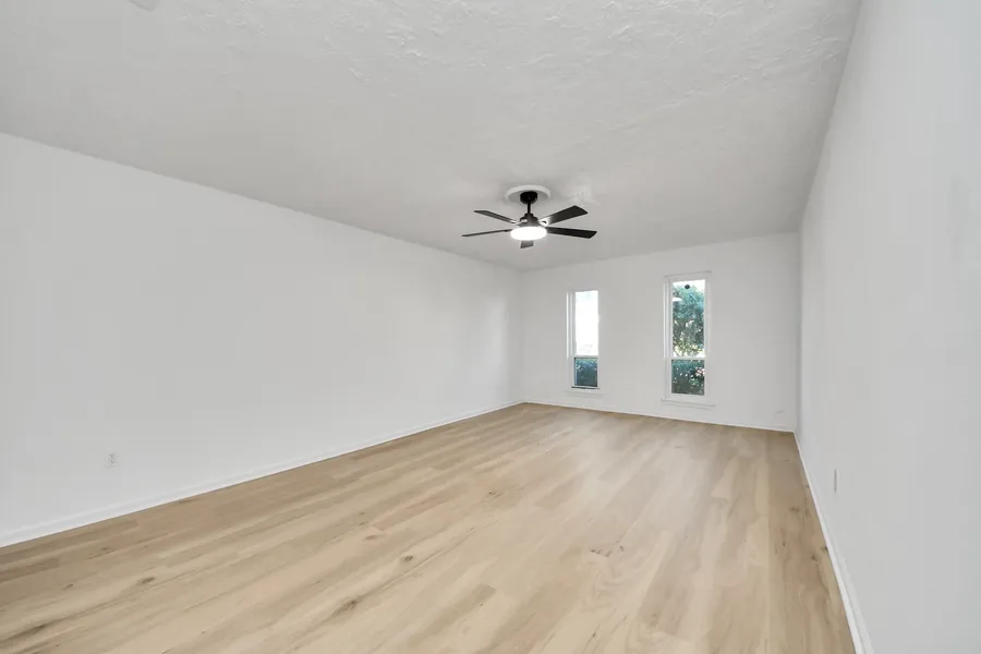 This stunning, fully updated home showcases modern finishes throughout and is designed for both comfort and style. Luxury vinyl plank flooring flows seamlessly through the main living areas, complemented by sleek modern light fixtures and soaring ceilings that enhance the oversized living space. The chef-inspired kitchen features elegant granite countertops, while the bathrooms boast beautiful quartz finishes. The spacious primary suite is conveniently located on the first floor and offers a large spa-like bathroom with dual walk-in closets. Upstairs, three generously sized bedrooms share a Jack-and-Jill style bathroom. Situated on an oversized lot, the backyard is an entertainer’s dream with a massive in-ground pool and spa, creating a private oasis ideal for relaxing or hosting unforgettable gatherings.
