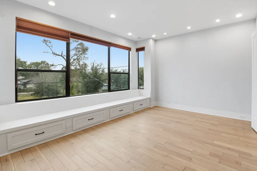 Come home to 406 Fenn St Unit A—a stunning townhome on a quiet, tree-lined street. Oak Forest adjacent, this light-filled home offers rare first-floor living with travertine floors, quartz counters, a wine bar, and a chef’s kitchen with an oversized island overlooking a private, turf-lined backyard. The second floor features a luxurious primary suite with a floor-to-ceiling tiled shower, walk-through closet, and extensive built-ins, plus two secondary bedrooms with a shared bath. The third floor includes a spacious media room, game room, fourth bedroom, loft with dual built-in desks, and a mini-fridge—ideal for work-from-home or entertaining. Wired for surround sound in every room and equipped with outdoor cameras, this home blends thoughtful design with high-end comfort.