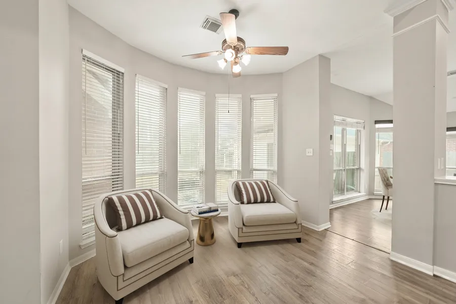 Welcome to 16907 Sandestine Drive, a beautiful home in the master-planned community of Copperfield, offering 2,540 sqft of living space on a 10,292 sqft lot. This home boasts 4 bedrooms, including a flexible room ideal for a movie room with a private fireplace, 2 full bathrooms, and a front flex space perfect for a home office, or formal dining. The spacious living room showcases soaring ceilings, recessed lighting, plank floors, and a cozy fireplace with built-in media niche. The open-concept kitchen and breakfast area include granite countertops, ample cabinetry, a large center island with electric cooktop, pantry, and stainless steel appliances. The serene primary suite offers an ensuite bath with dual granite vanities, framed mirrors, a jetted soaking tub, and a glass-enclosed walk-in shower. Enjoy outdoor entertaining in the large backyard with a covered patio and string lighting. ...