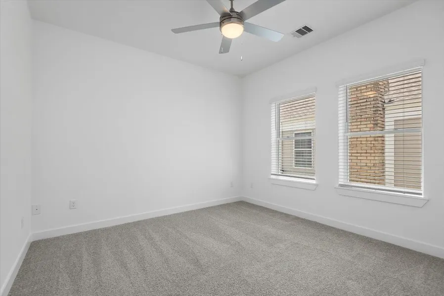 The bright open-concept layout connects the kitchen, dining, and living areas. The kitchen includes quartz countertops, stainless-steel appliances, and a refrigerator. Upstairs offers three bedrooms, a flexible study/home office, and a conveniently located utility room. Additional features include a Honeywell dual-zone climate system, insulated two-car garage, and window blinds throughout—MOVE IN READY