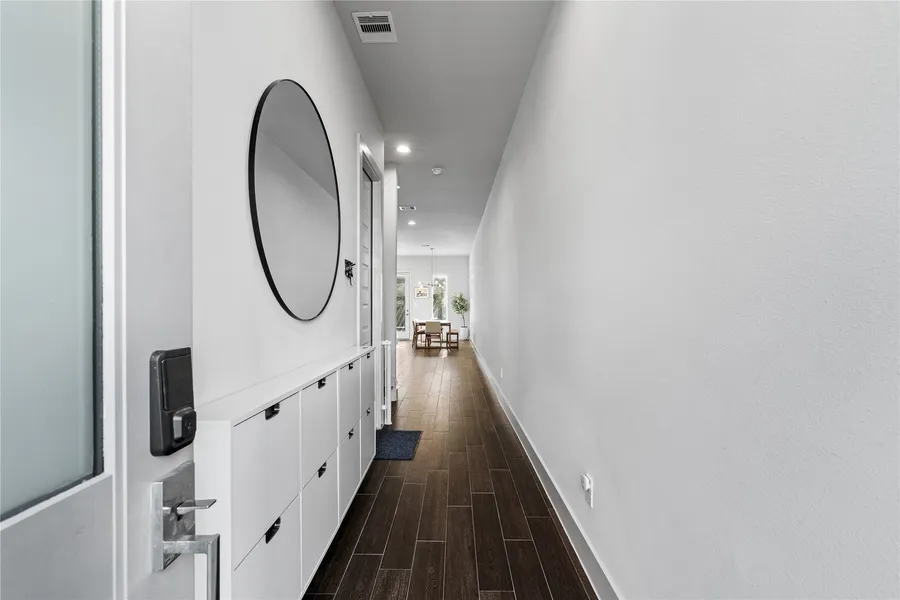 Welcome to 6813 Rocinante Ln, nestled within a modern gated community in Northwest Houston. This meticulously maintained two-story home offers 3 bedrooms and 2.5 bathrooms, blending contemporary design with everyday comfort. Wood-look tile flooring runs throughout the first floor, where an open-concept layout connects the living, dining, and kitchen spaces, ideal for entertaining. The kitchen features quartz countertops, stainless steel appliances, ample cabinetry, and sleek modern finishes, creating a stylish and functional centerpiece. All bedrooms are located upstairs. The spacious primary suite is filled with natural light and includes a spa-inspired bath with a standing shower, soaking tub, and large walk-in closet. A versatile second-floor flex space is perfect for a game room or home office. Enjoy a private backyard with a paved patio and pergola, plus access to a community lake. ...