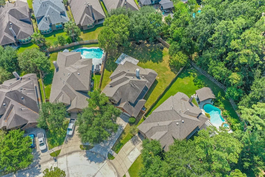 Fantastic 2-story on a cul-de-sac featuring a lovely brick/stone curb appeal, shaded porch, extended stamped concrete patio w/ a pergola, new sprinkler system, generator hookup, updated AC units, & pool-sized backyard w/ updated fencing! High ceilings & recessed lighting throughout, a grand tile entry, formal dining w/ wood flooring, large windows along the rear, a fireplace in the living room, utility room, half bath, breakfast area, & island kitchen w/ granite countertops, ample storage, butler's pantry, & a sprawling breakfast bar. Also downstairs is the primary suite w/ a custom closet system, dual sinks, separate shower, & garden tub while upstairs holds the game room w/ a walk-in closet, 2 bedrooms, & the 2 full bath w/ dual sinks. Located in the master-planned community of Eagle Springs w/ access to numerous amenities including the Island Club Pool, Sports Complex, parks, clubhouses, & more! Easy access to Beltway 8, FM 1960, Atascocita/Kingwood, & Lake Houston!