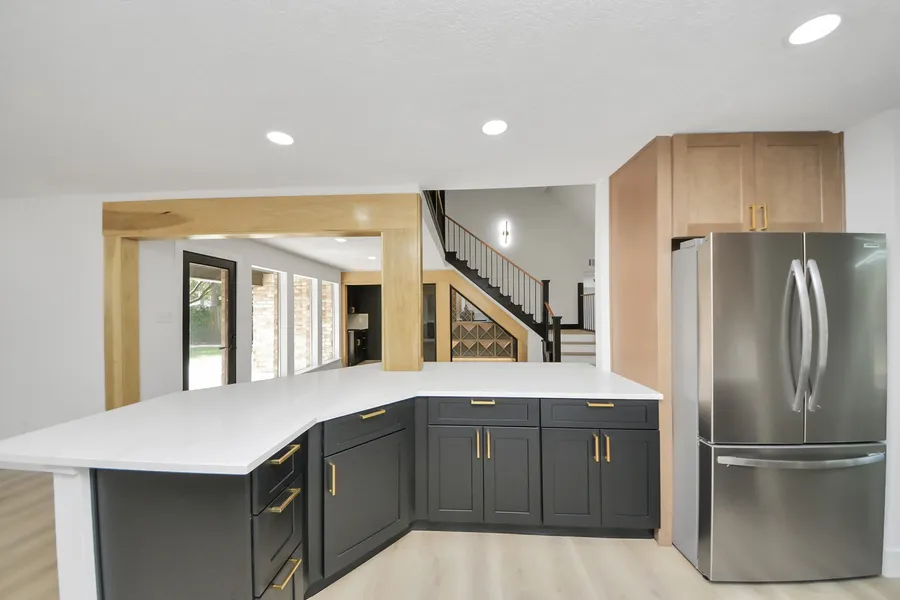 This beautifully remodeled 4-bedroom, 2.5-bathroom home showcases luxurious finishes and custom details throughout. Packed with features such as a striking custom glass wine cellar, a luxurious wet room, and epoxy-coated garage flooring. The spacious primary suite features a stunning en-suite bath and a beautiful, oversized walk-in closet designed for both style and function. Recent upgrades include fresh interior and exterior paint, new interior doors, soft-close cabinets, quartz countertops, luxury vinyl plank flooring, updated restrooms, modern light fixtures, new faucets, and brand-new appliances. The open-concept layout offers a seamless flow, perfect for everyday living and entertaining. Step outside to a fully fenced, expansive backyard - ideal for outdoor gatherings, pets, or play. This home is the perfect blend of modern elegance and comfort. Schedule your showing today!