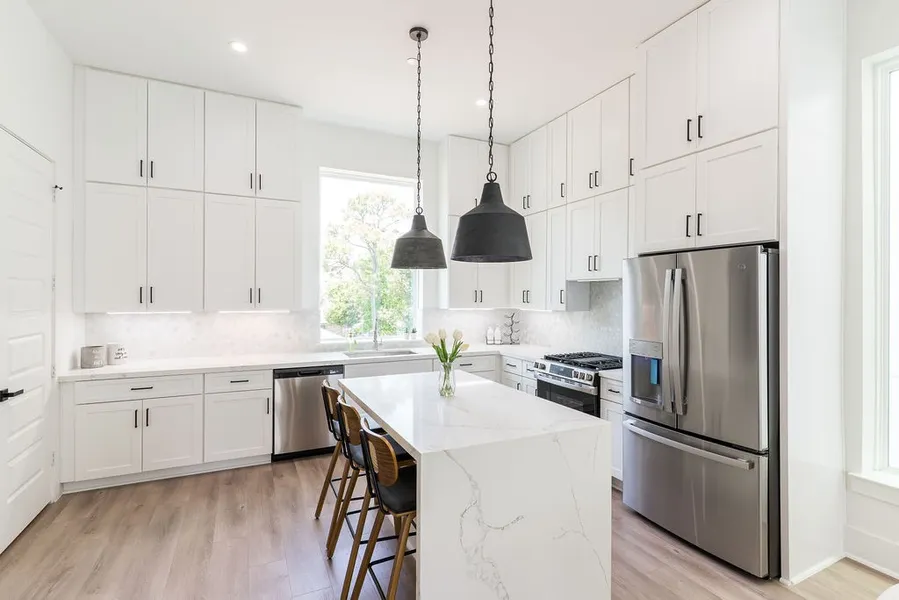 Impressive new construction by Vita Homes, offering elevated urban living in a private gated community just minutes from the Galleria’s premier shopping, dining, and entertainment. The first-floor study easily converts to a fourth bedroom. The second floor showcases an open-concept living room, dining area, and chef-inspired kitchen, highlighted by 11’ ceilings and a striking gas fireplace with floor-to-ceiling stone surround. Quartz countertops and designer finishes elevate every space. The third floor features a luxurious primary suite with spa-style bath and a secondary bedroom, while all secondary bedrooms include en-suite baths for added privacy. On the fourth floor, enjoy a spacious game room with wet bar, beverage fridge, and half bath—alongside a third bedroom with oversized closet. The expansive rooftop terrace offers beautiful Galleria views, perfect for entertaining or relaxin...