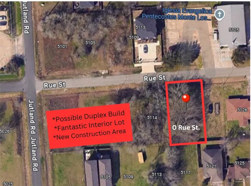 Seize this prime 5,500 sq ft lot in Bayou Estates, a rapidly growing neighborhood near the Houston Medical Center. Conveniently located less than 15 miles from Downtown Houston and 5 miles from the University of Houston, it provides excellent connectivity. Surrounded by new construction, including multifamily homes and duplexes, this development-ready property at 0 Rue St. offers high visibility, design flexibility, and a seamless build process with a complete survey and compliance with new livable ordinance standards. Just a block from the Sims Bayou Hike & Bike Trail with easy access to major roadways, it combines lifestyle appeal with strong investment potential. An agent-connected builder active in the area is available to discuss building and architect resources. Whether you plan to build and rent, sell for profit, or live in one unit while leasing the other, this lot is a prime opp...