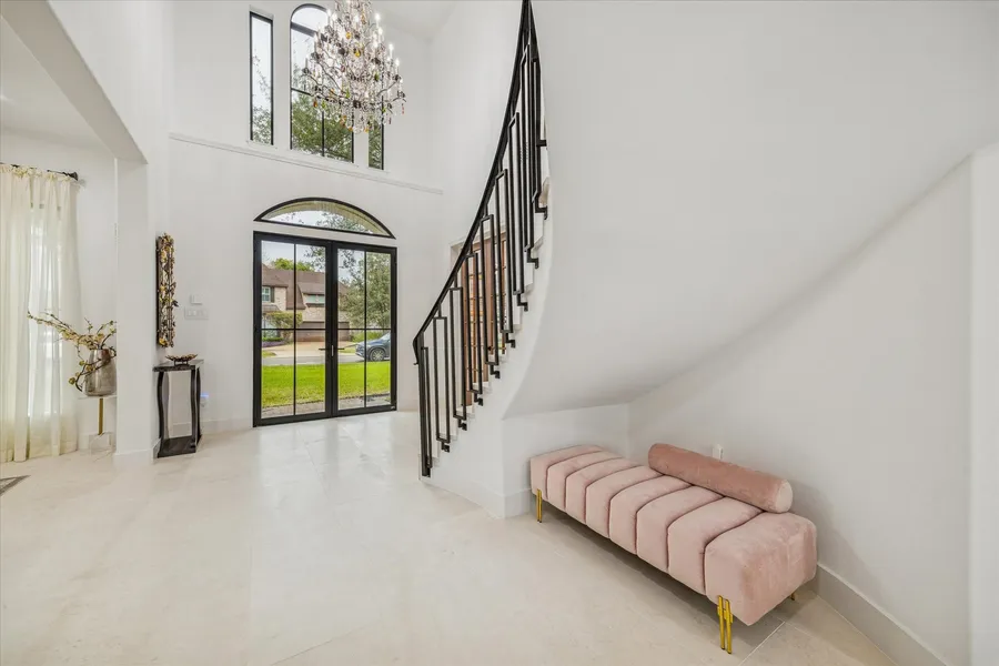 Stunning contemporary home tucked away on a quiet cul-de-sac completely rebuilt from the studs in 2025. Exceptional craftsmanship & luxury finishes throughout including white limestone, marble, porcelain & wood floors; PEX plumbing, full-house generator, new roof, RAM windows & doors; & 2-stage whole-home water filtration system. Dramatic 2-story Foyer flanked by Home Office & Formal Dining w/ custom bar clad in striking Panda marble w/ glass shelving & marble & gold inlay backsplash. Chef’s Kitchen w/ custom cabinets, 10 ft island, Décor 48” fridge/freezer, Café double ovens, 2 dishwashers, 6 burner Wolf gas range & Breakfast Room w/ mini fridge & expanded coffee station. Light-filled Living Room opens seamlessly to the Kitchen & features a limestone-surround gas fireplace. Elegant 1st Floor Primary boasts a spa-inspired marble bath w/ dual vanities, soaking tub, frameless shower & generous closets. Entertainer’s dream backyard w/ heated pool, hot tub & turfed green space.