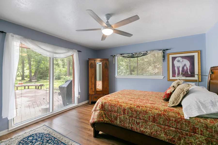 Nestled on almost 2 acres, this fully gated, cross-fenced property is a rare find for those seeking privacy, space, and equestrian features. The property includes a 3-stall barn, round pen, separate paddocks for turnout, and a lighted riding arena perfect for evening rides. Inside, the home offers updates throughout, including wood-look tile flooring, a spacious updated kitchen with granite countertops, an abundance of cabinetry, and a sunny breakfast area. Two expansive living spaces provide plenty of room for entertaining—one featuring dramatic floor-to-ceiling windows overlooking the deck, mature trees, and lush landscaping, and the other anchored by a new fireplace. Additional highlights include updated bathrooms, a whole-house/barn generator, 2 new AC units, new hot water heater, roof/gutters replaced in 2023, new entrance gate motor 2025.