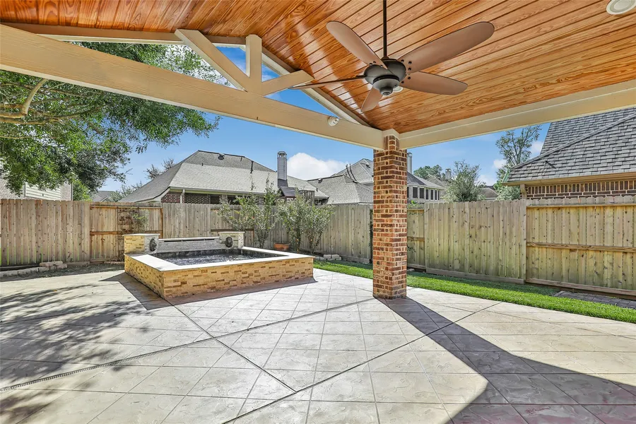 Beautiful Well Maintained 4 Bedroom 3 1/2 Bath Home on a Quiet Street. Lush Landscaping w/Lots of Trees. Large Entryway w/High Ceilings. Study w/French Doors. Wood Flooring in Study and Dining Room. Ceramic Tile in Entryway, Living Room, Kitchen and Bathrooms. Stone Fireplace w/Gaslogs. Large Windows in Living Room Area. Large Utility Room w/Counter Space and Sink. Kitchen has Lots of Cabinet Space. Gas Stove. Stainless Steel Appliances. Walk In Pantry. Breakfast Bar. Iron Rod Banister Spiral Staircase goes Upstairs to 3 Bedrooms. Jack and Jill Bathroom. Game Room and Media Room. Large Covered Pergola Patio Deck w/Ceiling Fan. Flagstone Tile Flooring. Under Ground Heated Small SPool/Jacuzzi. Storage Shed. 3 Car Tandem Garage w/Epoxy Flooring and Built In Shelves. Sprinkler System. Exterior Cameras. Fresh Paint 2024. New Carpet 2024. Never Flooded. Close to Shopping, Entertainment, Restaurants and More!!! Motivated Seller Bring All Offers.
