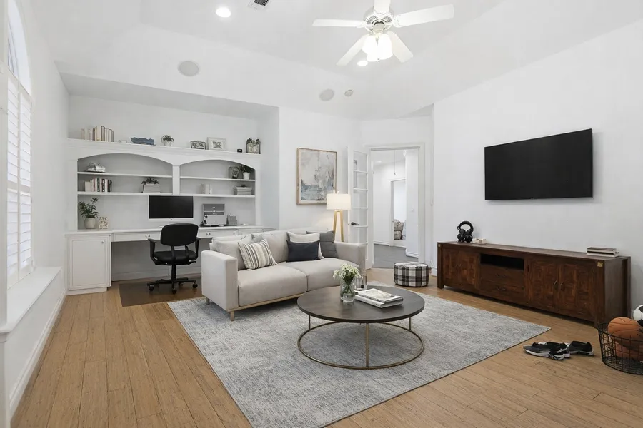 Set within Haven Lake Estates, an exclusive 28 home gated enclave, 8615 Haven Woods Way offers rare privacy on over an acre of manicured grounds. This custom single-story residence is defined by intention; soaring ceilings, abundant natural light, bamboo hardwoods, and refined tile finishes throughout. Thoughtfully designed living spaces include a private library, expansive entertaining areas, and a primary wing that serves as a true retreat, complete with an upgraded, design-forward owner’s bath. A private gated driveway, half-house generator, and 600+ sq ft of bonus space above the garage add both security and flexibility. A detached structure, currently a private gym, features electrical and offers future potential as guest quarters. Secluded yet connected, the home is minutes from Creekside and The Woodlands Mall, balancing estate-style living with everyday convenience. Quiet luxury, by design.
