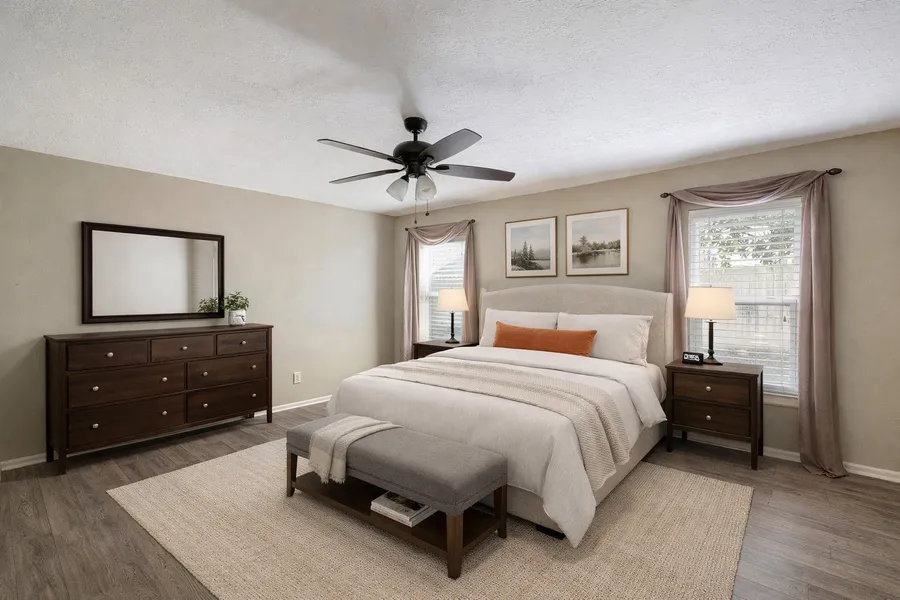 Beautifully maintained two-story home located on a cul-de-sac in the desirable Steeplechase community. This 3-bedroom, 2.5-bath home features an open, functional layout with a spacious living area, inviting dining space, and a well-appointed kitchen. The primary bedroom is conveniently located on the first floor, offering privacy and ease of living. Recent updates include a new roof (2025), new windows (2023), wood flooring, and a whole-home generator, providing both comfort and peace of mind. The large backyard offers plenty of space for outdoor entertaining or play. Steeplechase residents enjoy access to a community pool, tennis and pickleball courts, clubhouse, parks, and scenic trails. Conveniently located near Hwy 290 with easy access to shopping and dining. All info per Seller.