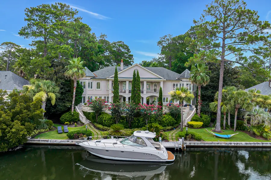 Nestled within the exclusive private waterfront community of Wexford on Hilton Head Island, this gorgeous harbor-front home at 23 Bridgetown Road offers an unparalleled lifestyle of elegance and comfort. Boasting five spacious bedrooms and five-and-a-half luxurious baths, this home is designed for those who love to entertain. The fabulous great room serves as the perfect gathering space, complemented by a gourmet kitchen featuring custom cabinetry, top-of-the-line appliances, and an adjacent full wet bar.
