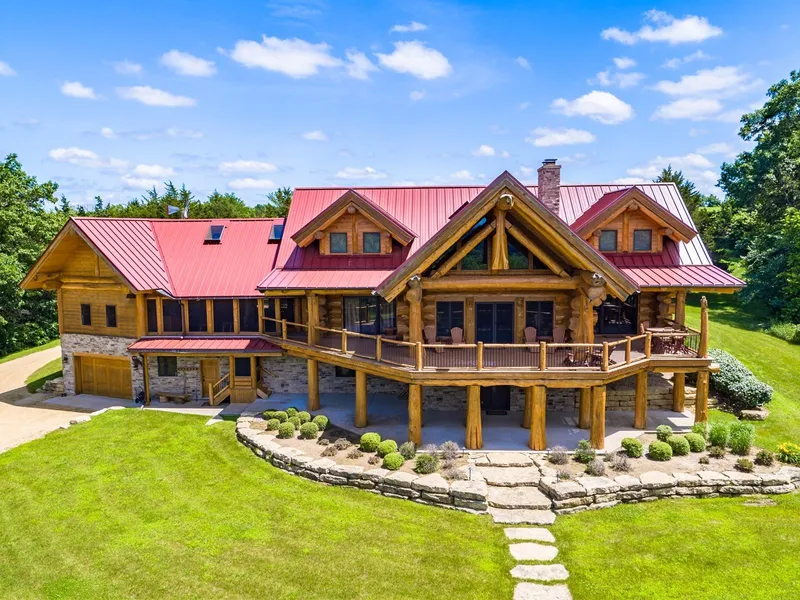 Luxurious state-of-the-art gated entry way, with private driveway, Pioneer Log Home built in2009 & located in Galena, IL. Situated on 12+/-acres. Two-story, withfully finished lower level walk out. Home sprawls out across 6003 sqft. Attention to detail evident throughout this gorgeous Log Home. Pioneer LogHome is constructed of imported Western Red Cedar, from British Columbia. Check out their unique individual design of the wooden carvedEagle off the deck.