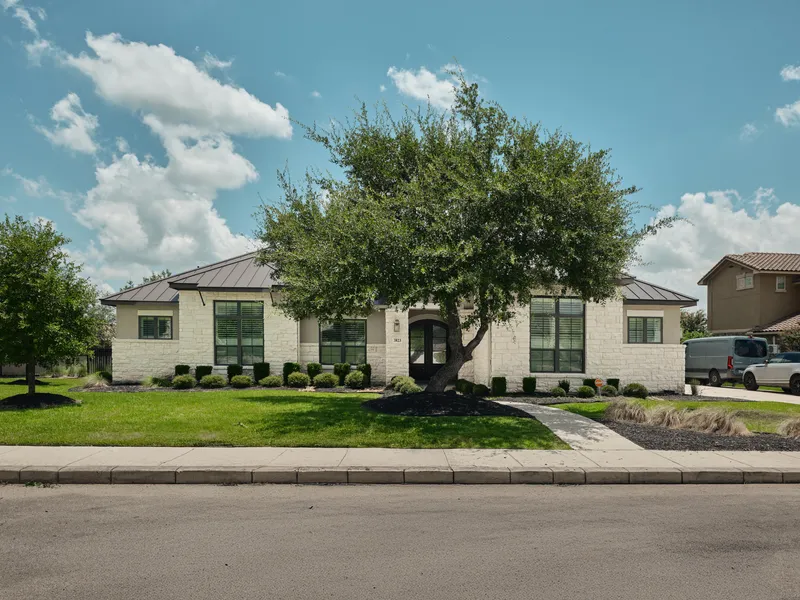 Experience refined living in this custom-built, single-story luxury home by Imagine Homes, located in the prestigious gated community of Palacios at Cibolo Canyons. Offering 4,237 sq ft on a 0.347-acre lot, this meticulously designed residence features 4 spacious en suite bedrooms, 4.5 bathrooms, and upscale finishes throughout. Vaulted ceilings with beams and arches, hardwood floors, and large windows with high-end shutters provide a warm and elegant atmosphere. The chef's kitchen includes quartz countertops, custom maple cabinetry, an oversized island, and premium KitchenAid stainless appliances, including a 48" dual-fuel gas range with double convection ovens. A stylish wet bar with wine fridge flows into the open-concept living area, ideal for entertaining. Additional spaces include a home office and a large media/flex room. The expansive primary suite offers a spa-like bath with soa...