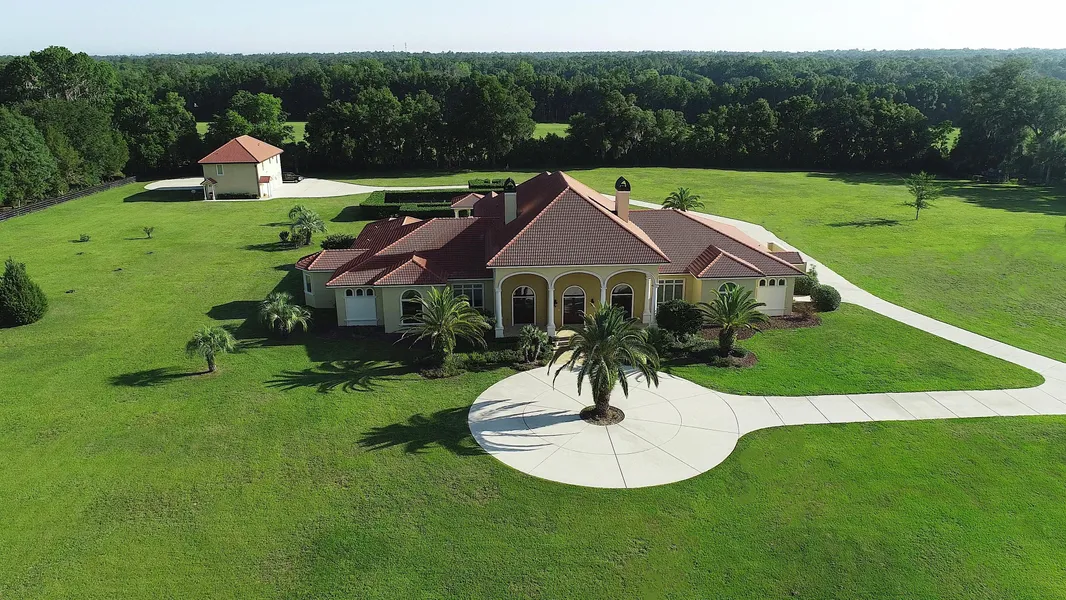 Experience the perfect combination of luxury and country living on this incredible 6+/- acre retreat. The grand residence was built with structural safety in mind, this fortress-like home boasts an impressive array of impeccable construction and over 8,000 square feet of opulent living space. The kitchen is a culinary haven equipped with top-of-the-line appliances and custom cabinetry catering to the most discerning chefs. Custom millwork by skilled artisans throughout the house. The spacious executive office has solid African Padauk doors, cabinets, coffered ceilings & a generous sitting area. Unveil a realm of sophistication in the library with meticulously designed high bookshelves. This distinguished space offers a perfect blend of architectural craftsmanship and practicality, creating an inviting ambiance for both work and relaxation. The 30 X 70 oversized display room has a center fireplace, built-ins, & recessed lighting to display your trophies or memorabilia. Private underground soundproof 50-foot firing range. Indulge in the epitome of comfort in the primary suite, featuring a luxurious bathroom, dual vanities, and a jetted tub overlooking the beautiful grounds. 3 En-suite bedrooms and 2 partial baths, each bedroom is a suite of indulgences. Entertain effortlessly in the lanai and summer kitchen overlooking the outdoor swimming pool area with a Jacuzzi tub, ideally situated to enjoy the serene resort-style pool area. Perfect for savoring moments of tranquility. The residence features an attached 3-car garage. Oversized detached 3 car garage. Upstairs features a guest house with 1,550 SF and 2-bedroom 2 bath with an open kitchen living and gathering area. For added convenience, the residence is conveniently located close to town and its amenities. This is more than a home; it's a masterpiece where elegance and grandeur converge in perfect harmony.