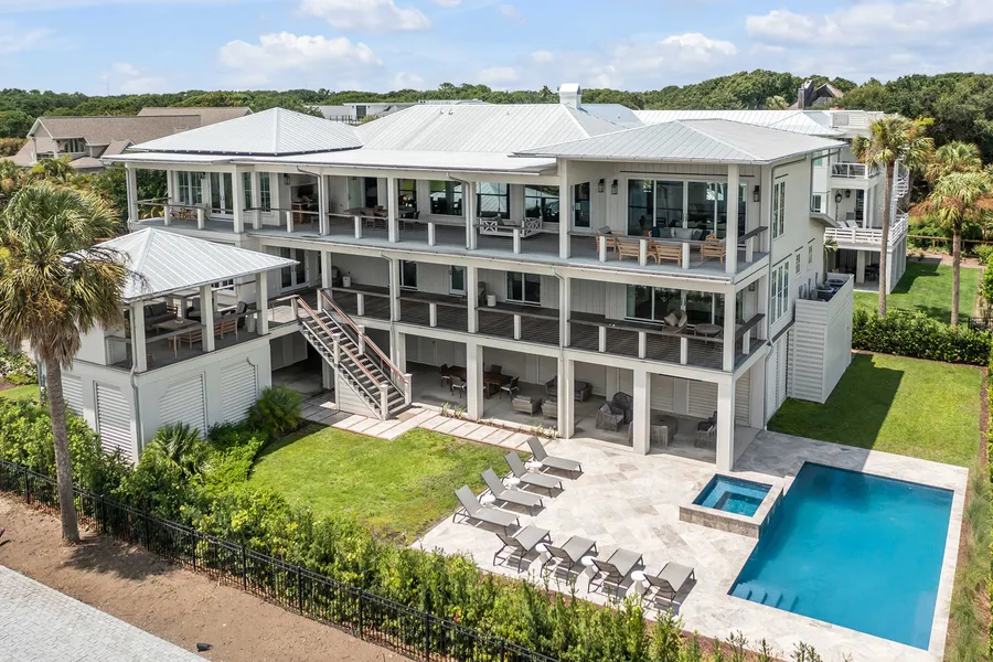 Steps from the pristine, wide sandy beach of Isle of Palms, 4 51st Avenue offers this and more - an exceptional example of artful design with true indoor/outdoor living to relax and enjoy the stunning ocean views. Built in 2019, this custom-built luxury home stands as an expansive 6,400 square-foot residence designed by Carl McCants of Mc3 Designs. The home features six bedrooms with ensuite baths plus two half baths while setting the gold standard in amenities and prime location along Charleston's idyllic coastline. There are two true master suites, one on the upper and one on the lower level, with each featuring ocean views and private deck access.