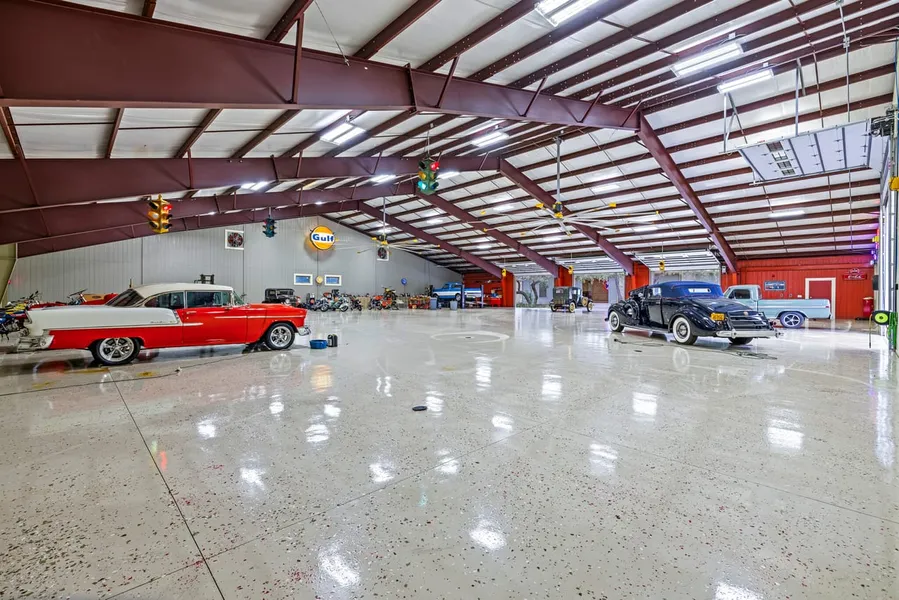 12,000 sf Workshop: Polished concrete floors, two Big Ass Fans, 220 outlets throughout, and 20-foot roll-up doors.