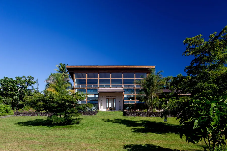 Here is your 100% Sustainable, totally private, luxurious off-grid Masterpiece Estate/Fruit Farm located on the scenic Red Road, on the east side of Hawaii. The handcrafted home was three years in the making, w/ detailed attention given to the construction methods, creating a one-of-a kind home in strength and Modern beauty, and designed to accentuate the natural surroundings. Soaring 30 ceilings illicit a calm, clear, and elevated spirit as you enter. Floor to ceiling bank of windows in the Great Room is secured by massive wood frames with internal fasteners (no bolts or nails) and offers natural lighting all day and star gazing at night while overlooking the estate grounds, where meticulous attention was given for 15 years. The open floor plan flows easily from room to room, to the lanais & out to the gardens. Ohia poles soar from the ground floor to the 2nd-floor balcony and continue ...