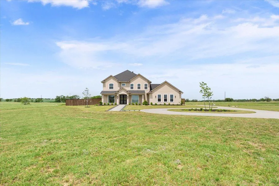 Discover tranquil country living in the highly desirable Willow Moon Ranch neighborhood. Situated on over 7 beautiful acres and build by The Alford Company, this spacious home offers over 4,900 square feet of upgraded living space with 5 bedrooms, 4 bathrooms, a dedicated office, and an upstairs media room. The chefs kitchen features a large island, 6-burner Viking cooktop, double ovens, under-cabinet lighting, Skinny Shaker cabinetry, and a walk-in pantry. Additional highlights include a butlers pantry and coffee bar, expansive laundry room with storage, a concrete-encased storm shelter, a home gym and an additional upstairs flex space, currently used as a playroom. The luxurious owners suite includes a soaking tub, separate shower, and large walk-in closet. The 3-car garage offers extra storage and a potting area. Outdoors, enjoy an area for raised garden beds with water access, a pool...