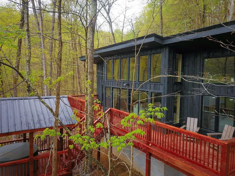 estled in the Red River Valley development in the Red River Gorge area, this modern cabin offers the perfect combination of luxury and convenience! Thoughtfully designed and completed in 2023, this property is an ideal space to get away. The front entry opens to a beautiful kitchen and living area with high ceilings and natural light that is perfect for relaxing after a day of outdoor adventure. The kitchen features custom cabinetry, stone countertops, and stainless appliances, and the living area features plenty of room for unwinding, conversation, and games. Flanking this space are two bedrooms and two bathrooms that provide you and your guests with private and comfortable spaces to retreat to within the cabin. Outside you will find multiple opportunities to enjoy the surroundings with a deck that features a seating area, dining space, hot tub, and a patio that has ample room. This cab...