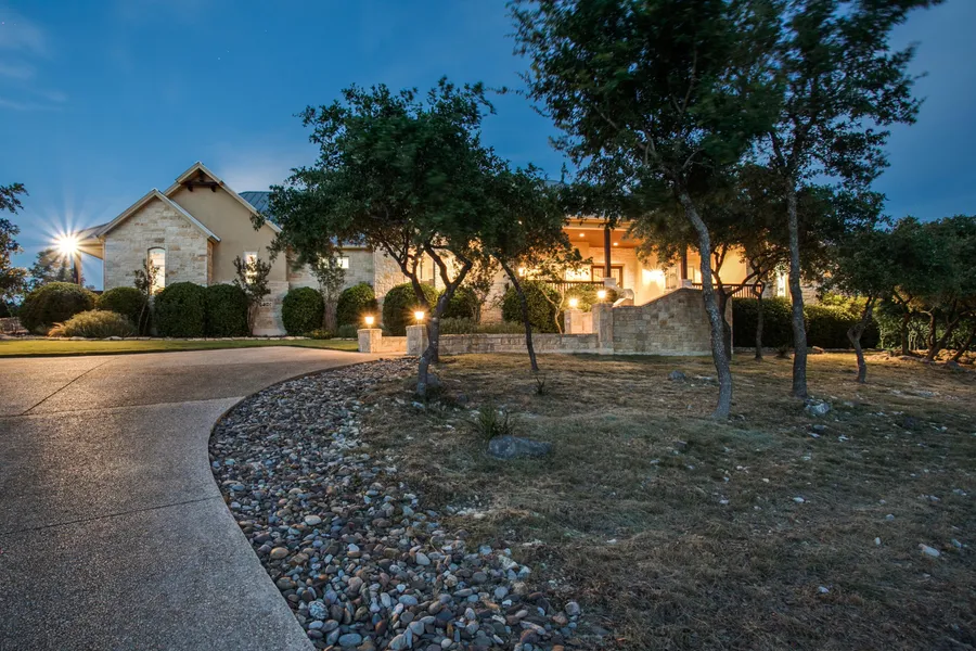 Resort-style amenities and exquisite nishes set a luxurious tone at this masterfully crafted single-story home. Showstopping around every turn, the residence boasts exceptionally realized spaces for living and entertaining, all beautifully set under stunning custom ceilings and graced with picture windows. Offering opulence in many forms, the meticulously planned interior includes a gourmet kitchen that is sure to please the keen chef, as well as a private study, game room and media room. Formal and casual dining spaces await intimate gatherings and divine meals with family and friends. The master bedroom enjoys views of lush gardens that surround the home, increasing the serenity of the owners retreat as well as the outdoor living spaces. In addition, the retreat is complete with a stunning spa bath featuring dual vanities, spacious whirlpool tub and walk-in shower. A dazzling pool with color-changing light feature offers a fabulous backdrop for every entertainment possibility, while an outdoor replace, shower and sports court contribute to the homes exterior amenities. Adjacent 2.02 acre lot also available for a total of 4 acres.
