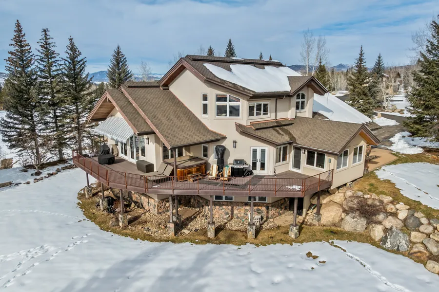 Nestled at the end of a quiet cul-de-sac along the fourth fairway of the Rollingstone Ranch Golf Course and conveniently located near the base of the Steamboat Ski Area, this substantially furnished, architect-designed residence offers an exceptional blend of privacy, ski area and south valley views, and stunning craftsmanship. Designed by award-winning Boulder architect Craig Bundy, the 5,328-square-foot home features five bedrooms and five-and-a-half baths, including a spacious family room, recreation room, sunroom, office, flex room, and an oversized three-car garage. Unobstructed views of the ski area, the Flat Tops, and Emerald Mountain are enjoyed from nearly every room, as well as from the expansive deck and beautifully landscaped yard. Refined finishes are showcased throughout, including a gourmet kitchen, cherry wood floors and cabinetry, and a recently completed private guest w...