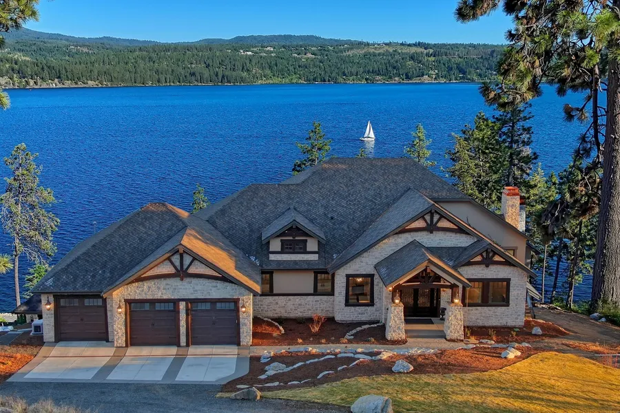 Fully customized, newly built smart home designed with impeccable craftsmanship throughout offering 146' of private water frontage on the pristine shores of Lake Coeur d'Alene. Located in the private gated community of Rock Island Estates, this showstopping home is a mere 20 minute drive from downtown Coeur d'Alene near Mica Bay with easy access by boat to Gozzer Ranch, Black Rock, and CDA National Reserve. This stunning home features 4 bedrooms, 3.5+ baths, a spacious home office, fitness room, wine room, sauna and 2,000 Sq. Ft of covered outdoor deck space perfect for lakeside entertaining. The heart of the home is a professionally designed kitchen complete with top-of-the-line appliances and an additional prep kitchen for hosting with ease. The 2 luxurious primary suites include spacious walk-in closets that make a style statement of their own. The architect's inspiring design creates a harmonious indoor-outdoor flow with soaring vaulted ceilings and expansive windows. Smart home automation, a whole-house backup generator, and a finished 3+ car garage with custom storage systems provide an extraordinary sanctuary. Whether you're boating to nearby resorts or relaxing by the water, this home is truly a masterpiece of waterfront luxury living.