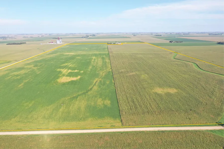 This is high-quality farmland in Lyon County adjacent to Cooperative Farmers Elevator in George, Iowa. See individual auction listings for details.