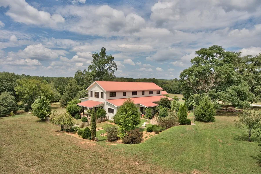 There are covered porches on all four sides of the home the 300sf west porch is draped with Lady Banks roses framing your spectacular sunset views. The entire homestead is professionally landscaped, with Azaleas, Day Lillys, and Snowball Viburnum, plus apple and pear trees and blueberry bushes its a gardeners delight! The 24x36 pole barn will house your equipment, and it adjoins a 1200sf garden thats fenced on three sides. The farm pulls its water from an on-site artisian well the owner believes it can pump close to 75 gallons per minute.