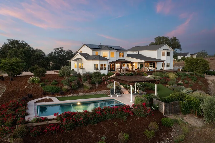 Debuting in the Plymouth countryside, a magical contemporary estate. Extensive renovation and additions were done to create this stunning estate. Soaring ceilings and windows allow for natural lighting and viewing of the private vineyard, olive orchard, seasonal pond, lush landscaping, and sparkling pool. A superb kitchen is at the center of the home, with high-end appliances. Just renovated, the ensuite master bath, has floor to ceiling tile, a soaking tub, and a dreamy walk-in closet. In addition to the master retreat, there are 3 guest rooms, home office, workout room, and a large unfinished bonus room above the garage. A spectacular private wine cellar holds +/-1400 bottles, enclosed by a full wall of glass, this room makes a statement. Sip your favorite varietal in the cool of the cellar or light the fireplace for a more intimate experience. Step outside and enjoy one of the numerou...