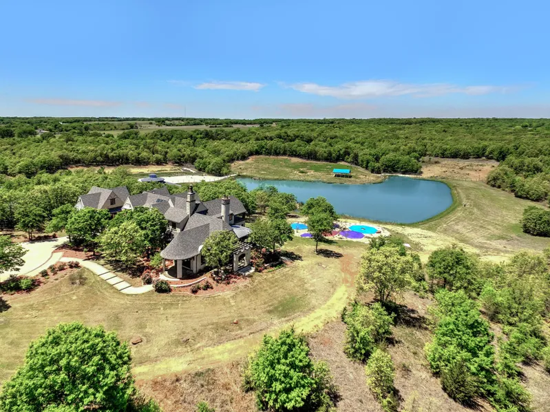 Want a piece of Paradise? Exquisite country mansion on 200 acres. 1 hour North of Dallas-Fort Worth. Majestic trees, incredible views from many walls of windows and balconies, water view with 8 stock ponds, 5 acre lake. 1st Class BAR room. Outdoor kitchen with fireplace & TV, and a gorgeous view of the countryside. Includes a very nice 2 bedroom caretaker cabin fully furnished with shop. A 2400 SF guest house, 3 bedroom, 2 bath, fireplace and full basement. Gated garden area with wrought iron fencing around garden. Central heat & air Rotunda barn with 7 stalls, tack room, bath, utility room. Wildlife galore with deer, turkey, hog, ducks, geese. Ponds are stocked with Bass, Blue Gill, Catfish abounds. Loafing sheds, 24 x 40 building for hay storage, 40 x 60 building used for Trailers with overhead doors. 60 x 120 building for equipment and storage. All buildings have electricity. Agric...