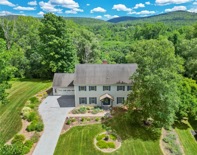 Elegance and sophistication describe this exceptional colonial. Set in the preferred southeast with absolutely breathtaking distant mountain views. Be welcomed into a lovely neighborhood then up a sweeping stampcrete driveway bordered by beautifully landscaped sprinklered perennial planting beds. Step up on the covered pillared entryway and enter the immaculate and inviting foyer. Experience this thoughtfully designed floorplan of three levels of living for you and guests. Enjoy all the seasons with glorious views to the southeast from many rooms. Gleaming hardwood floors throughout shine from room to room as you entertain in the grand formal dining and living room spaces. Cook in the spacious gourmet kitchen accented in light greys, granite, custom lighting, and stainless appliances. Everyday dining overlooks the sweeping lawns and brook. Curl up in the fireplaced den with a book for cozy cuddling space or have the guests and neighbors over to watch the game in the expansive family room with wall size tv and custom bookcases for fun and excitement. Expand outdoors on the full length deck with views, and automatic awning for sun covered enjoyment. Low level expansive living space finished with windows and glass doors to a full walkout deck. Incredible exercise, craft and game room space with a powder room for downstairs convenience and outdoor activities. Sit by the outdoor firepit. Explore in the woodland garden and meander down to the babbling brook for serenity of the water sounds at the waters edge. Hike or mountain bike out your door to October Mountain and Sackett Brook (Kirvin) Park yet minutes to shopping in town. Centrally located in the beautiful Berkshires equi-distant to The Clark Art Museum with a multi-million dollar expansion in the works, as well as Tanglewood, Edith Wharton The Mount to the south. Sail, motor, swim, kayak, canoe, crew, and paddleboard on the two magnificent lakes. Have it all in this secretly magical traditional colonial home while embracing the beauty of the Berkshires out every window.