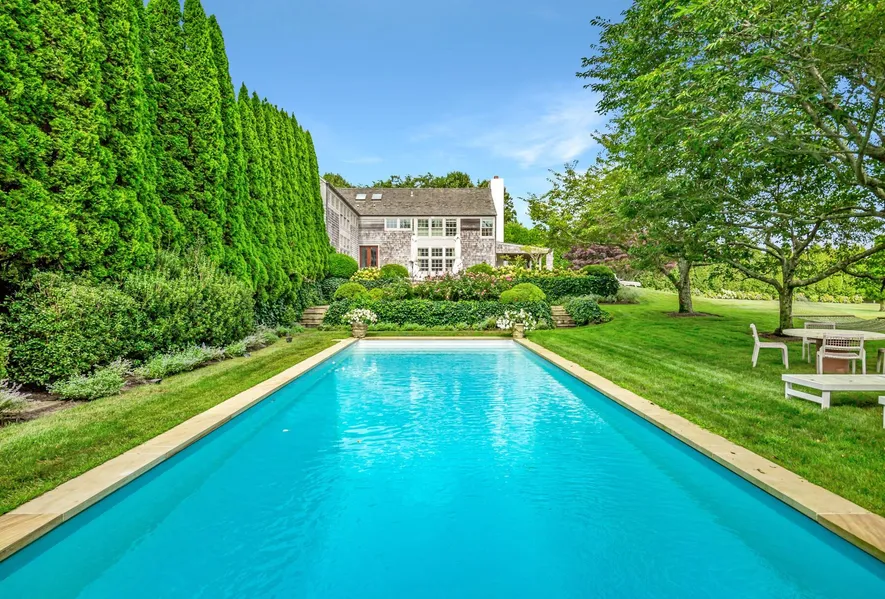 As you approach this exquisite property, the alluring tree-lined driveway immediately captivates. Masterfully designed by the renowned James D'Auria and prominently featured in Town and Country Magazine, Elle Decor, HGTV, Open House NYC, and several esteemed publications, this residence has been meticulously maintained by its current owners. The grand foyer welcomes you into a two-story living room, offering a breathtaking view of the lush patio and pool area. The chef's kitchen, complete with ample dining space, a wood-burning fireplace, and cozy patio access, is an entertainer's dream. The first floor also features a spacious guest bedroom with an ensuite bathroom, a laundry room, a pantry, and a separate TV den and game room with floor-to-ceiling glass doors.The second-floor houses four bedrooms, three of which are ensuite, creating a luxurious main sleeping area. The primary suite ha...
