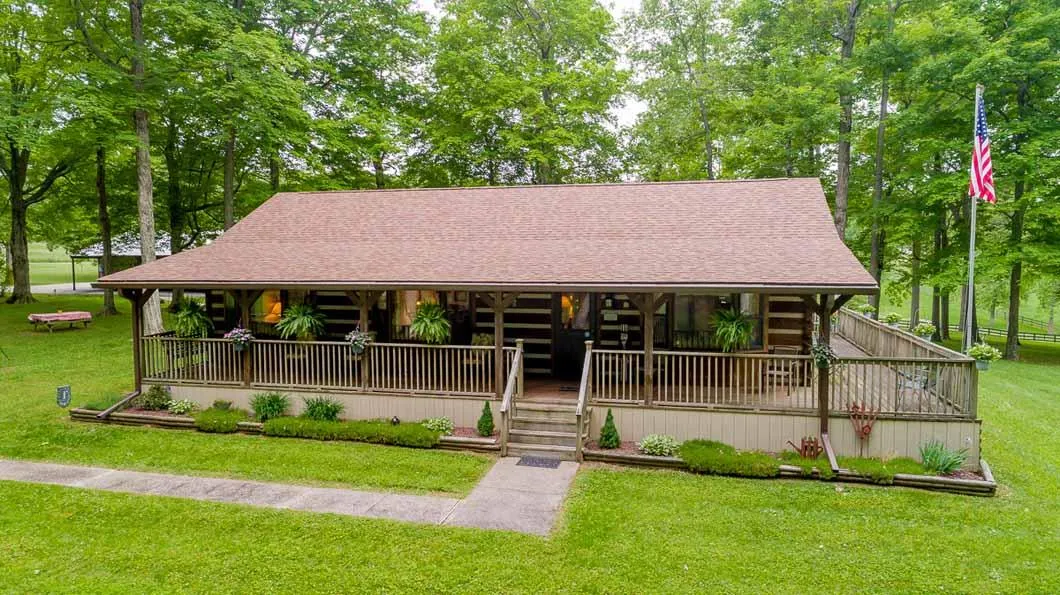 Majestic mini horse farm located in Floyd County, Indiana! This beautiful custom built log home is nestled on 19.46 wooded acres and offer scenic views from every point, over 1700 above ground square feet, 3088 total square feet, 3 bedrooms (one in basement, no egress), 2 baths, finished basement, 3 covered porches, security system, double pane with storm windows, three board fencing, sprawling paved driveway, pond, five stall horse barn, eight car garage, fire pit and New Albany Floyd County Schools. You will love the natural beauty and energy efficiency this great log home has to offer. Built by Honest Abe Log Homes from Tennessee, using pine logs, tongue and grove joints, and foam insulation sits between chinking and NO herbicides or pesticides used in treating/staining the logs. UPDATES include: dishwasher and built-in Microwave (2019), CORIAN countertops, Roof and Gutters in 2017, Furnace and Coils in 2017, 1,100' of Paved Driveway in 2016. Third bedroom located in basement does not have egress window. Retreat and park like setting. There are two parcel numbers to convey with this sale. Be sure the purchase agreement shows both. Seller request pre-approved buyers only. Propane tank is owned by Seller, fuel to be prorated at closing. Items that do not remain are attached mantel located in the basement and water pump located in side yard. After closing seller will give the buyer a first right option purchase the 2.9 acre tract located east of the subject property.