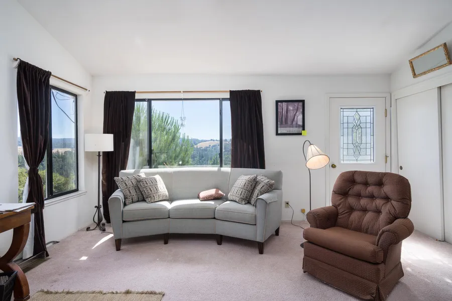 Majestic views, privacy and tranquility. Details abound! Stunning views are enjoyed from both the kitchen & living room. The kitchen has been upgraded with concrete counters, shaker cabinets & bamboo flooring. The master bedroom has an oversized closet & en-suite bath, w/ step in shower. Enjoy the view from the deck, the hummingbirds, or the fenced garden with raised planter beds. High speed internet, 4 miles to town, large pad area for potential garage. This is a great home.