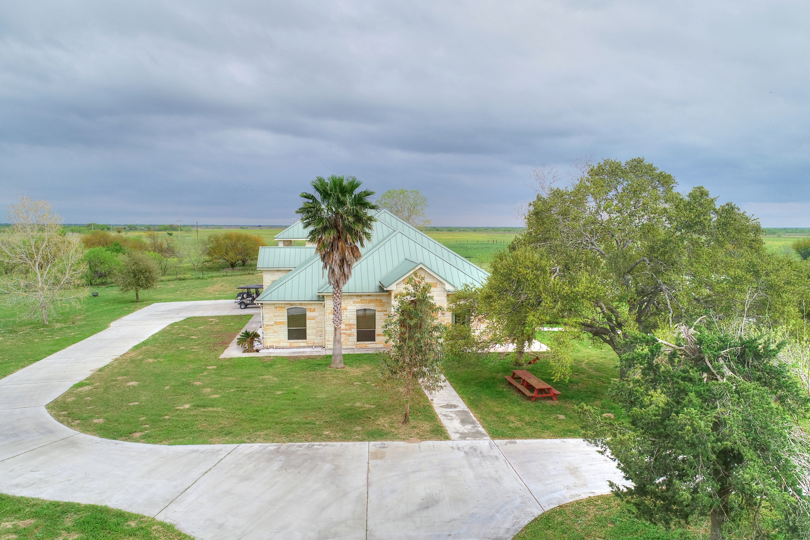 PRIVATE WATERFRONT COMPOUND ON 1000 ACRES WITH ALL THE EXTRAS. This sophisticated ranch home was built to last using Austin stone and 100-year aluminum roof. Inside, the crafted arched double doors welcome you to soaring ceilings, intricate wood detailing, expansive kitchen with Granite counter tops and great prep island make this home the family gathering place. 5 bedrooms, separate and spacious master with outdoor access, and 4 full bathrooms for all your friends and family to come for weekend memories. Incredible wood beams and floor-to-ceiling gas fireplace accentuate the countrified chic, open and airy home full of natural light and intoxicating sunsets. With several storage sheds on the property and even a three car garage, you're sure to have plenty of room for all your ranching equipment and toys. The opportunities with this land are endless. Fish in your very own pond, then rela...