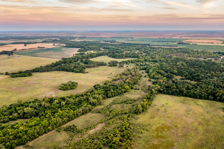 With Argonia Creek cutting a main channel throughout the farm that feeds into the Chikaskia River, water on the farm is constant even in tough drought conditions with pools throughout. The 68 +/- acres of timber stand are made up of a majority of black walnut, cottonwood, osage orange, locust, elm, oak, and cedar. With all the funnels and pinch points throughout, one would maximize with stand locations set to hunt multiple wind directions. The timber stand towers over top with an open understory and leads out to a brushy cover. Walking throughout, you can turn in each direction and jump on a deer tail. So many rubs along the way some past year and some currently being worked over. The tall cottonwoods on the west draw hold the turkey roost. Several were trotting through the timber along the creek. With being located just on the east side of the Chikaskia River with big timbered farms adjoining, I can only imagine the possibilities! In the middle of the farm between the west side of the creek and the fingerling draw running off to the north, 8 does and a few fawns were bed down and bumped that ran to the south timber stand. And with all of the signs, I am confident of what bucks are there as well. Over the years, the owner had success annually while stewarding the land for continued future success. From mature deer to turkey pheasant and quail, this farm holds year-round hunting and enjoyment growing the farm in hunting unit # 15. All mineral rights are intact.