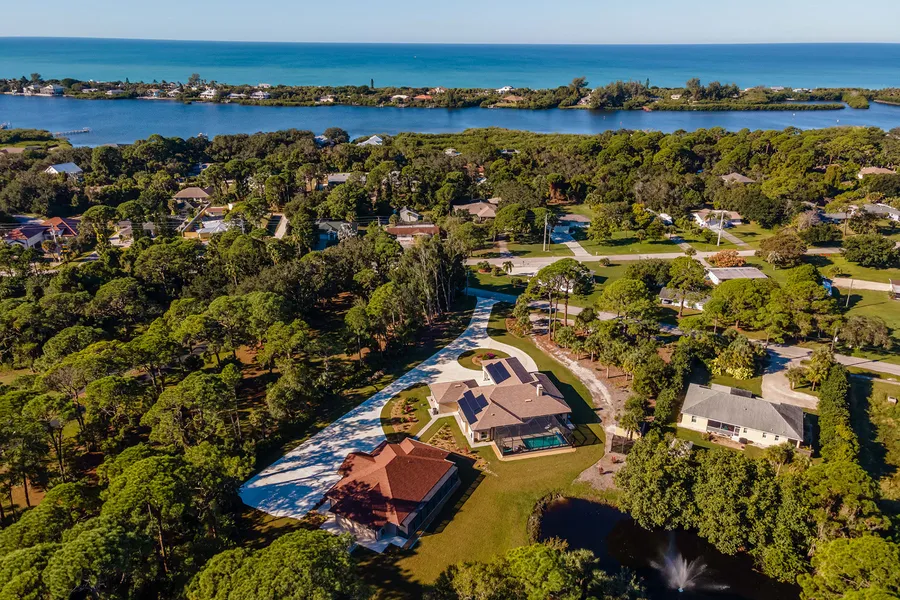 This estate embodies the essence of Florida luxury living — serene water views, expansive entertaining spaces, and impeccable finishes throughout. Whether envisioned as a private family compound, boutique hotel, Airbnb, corporate retreat, or assisted living facility, the property's Mixed-Use designation unlocks incredible possibilities. Step into a world of elegance and opportunity with this magnificent Northern Englewood compound, a rare sanctuary that seamlessly blends luxury living, income-producing potential, and future development possibilities. Completed in 2021, this custom-built estate is more than a residence — it is a private resort-style haven, featuring a grand main home and guest house with a combined 9 bedrooms and 7 bathrooms, currently operating as both a distinguished private residence and a boutique hotel. You will find that this superb property offers over 7,000 sq. ft. of refined living space with a wood-burning fireplace, an attached 3-car garage, as well as parking for 15+ vehicles on an expansive concrete drive across 4.5 acres of manicured grounds. Mixed-Use approved zoning for unmatched versatility, along with Dual Income potential: boutique hotel or wedding and event venue. Located just 0.9 miles from Manasota Beach, offering coastal convenience and Category 5 storm-standard construction on secure 20-ft. elevation and a private solar farm delivering near-zero energy costs ($28 monthly connection fee only). Enclosed solar-heated, saltwater pool with designer non-slip decking that is always cool underfoot and multiple outdoor kitchens perfect for entertaining. All these features are set amid lush, professionally landscaped grounds, including a tranquil pond with fountain views and a romantic pergola for any event you might envision. This estate is being offered fully furnished, turnkey, including premium appliances and curated decor, so let's make your vision a reality! This estate embodies the essence of Florida luxury living!