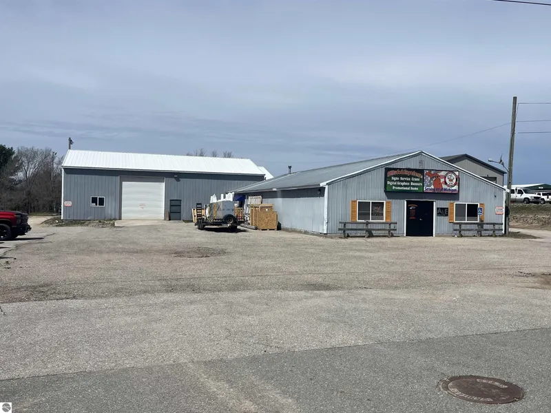 This 8,500 s/f building is suitable for many commercial, wholesale, service, industrial uses. It offers offices, showroom area, shop, and warehouse. Two Bathrooms, several 14 ft overhead doors, 16 ft sidewalls , DTE heat, Water Well and Septic ( But Municipal Water and Sewer are available by paying for benefit charges) Property is zoned C/M Commercial/Industrial . Consider the super good location with great HWY visibility and is adjacent to the back part of Menards. Possession is negotiable as the current business will be relocating. Check the Market Place and compare. This Property offers HWY visibility, and building design useable for most any Retail or Wholesale or Industrial Uses.