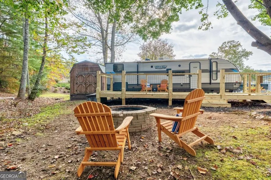 Escape to the serenity of the North Georgia mountains with this like-new 2021 Forest River camper, perfectly placed on a beautifully landscaped and peaceful private RV lot in the desirable Twin Creeks community in Choestoe, Blairsville. Surrounded by mature trees and the soothing sounds of nature, this waterfront lot features two tranquil branches (streams), a brand new deck, a cozy outdoor fire pit, and lush, mature landscaping that creates a true mountain retreat. The spacious camper includes bunk houses, a bath with tub, and an electric fireplace-offering comfort and charm year-round. Enjoy the quiet, natural setting with access to the community pavilion, nestled between two roaring creeks-ideal for gathering with friends or relaxing by the water. Located near Vogel State Park, the Appalachian Trail, and Brasstown Bald, this is affordable mountain living with endless outdoor adventure just minutes away. Owner is licensed agent.